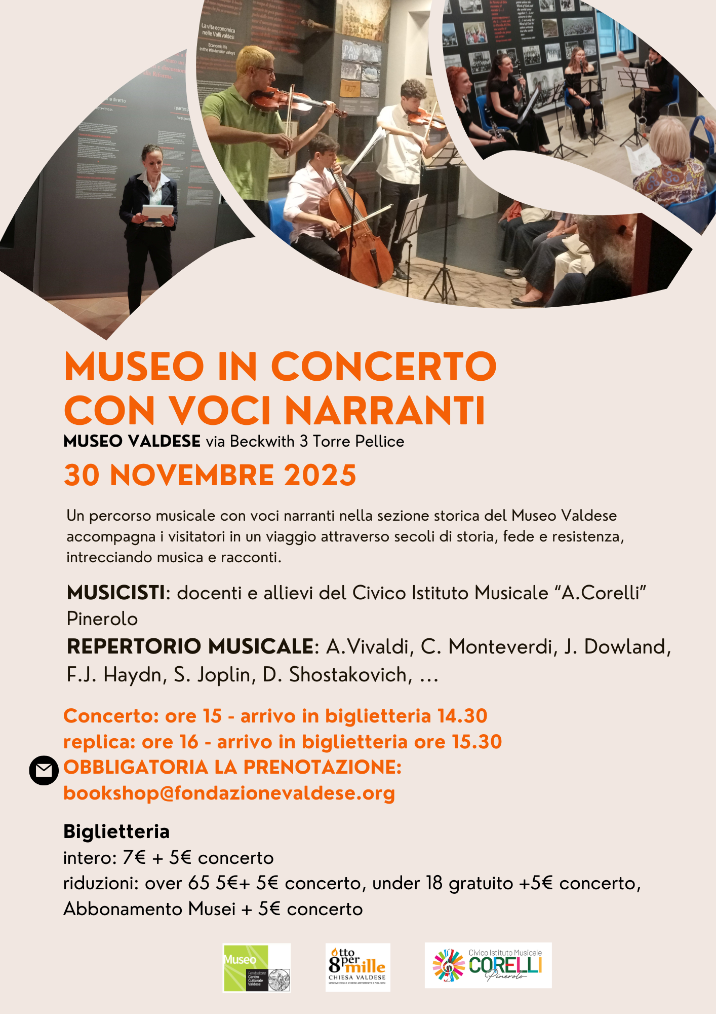 MUSEO IN CONCERTO CON VOCI NARRANTI MUSEO VALDESE VIA BECKWITH3 TORRE PELLICE In collaborazione con i docenti e i migliori allievi dell’Istituto Civico Musicale “A. Corelli” di Pinerolo con letture a cura della Fondazione Centro culturale valdese Un pomeriggio...